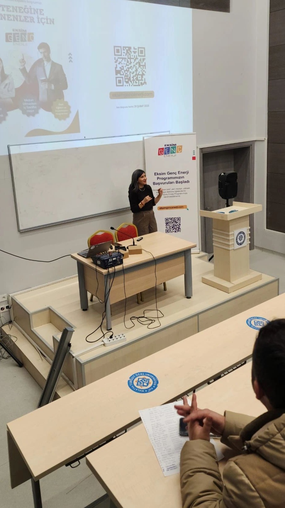 Etkinlik kapsamında öğrencilerle buluşarak şirketimizin faaliyet alanları, enerji sektöründeki kariyer olanakları ve genç yeteneklere sunduğumuz fırsatlar hakkında bilgi paylaştık. Sunumda ayrıca, kariyer yolculuğuna güçlü bir başlangıç imkânı sunan Eksim Genç Enerji Programımız da öğrencilere aktarıldı.